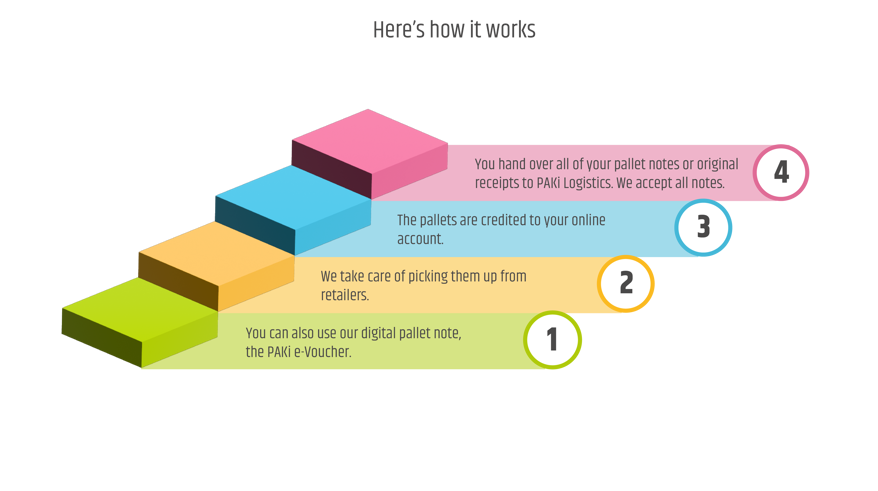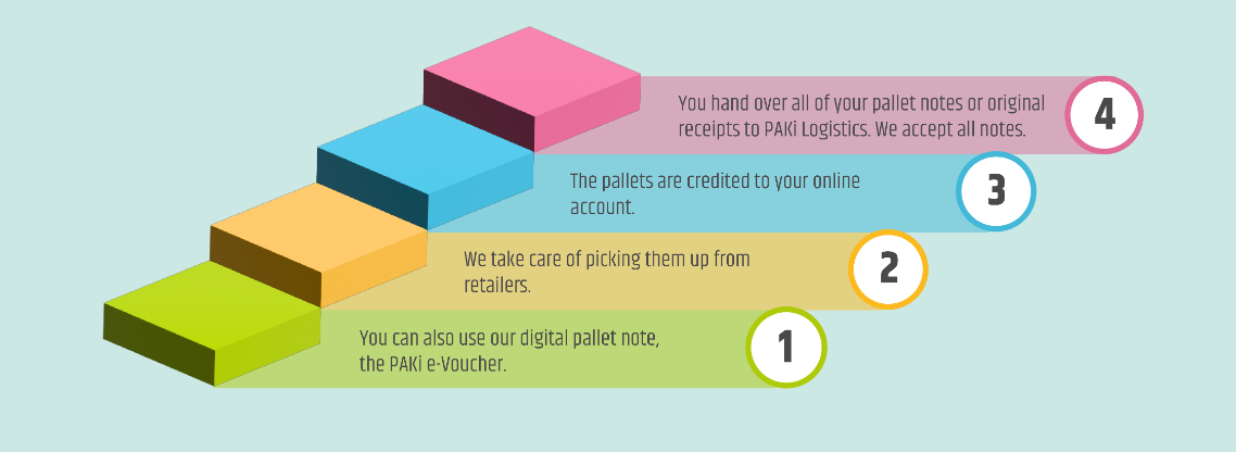 Retailers can simply release the borrowed pallets back to PAKi Logistics as they become available. Forwarders can be on their way immediately without having to unload empty pallets. That saves time and fuel. Furthermore, you no longer need to get into any discussions about the quality of the delivered pallets compared to the ones being returned – a common point of contention between transport companies and retail.